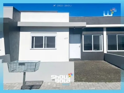 Excelente casa geminada com 2 dormitórios, ideal para famílias que buscam conforto e praticidade. O imóvel conta com sala de estar integrada à cozinha, criando um ambiente moderno e funcional, banheiro social completo, poço de luz natural para ventilação e luminosidade, jardim frontal para momentos de lazer e calçada pronta.